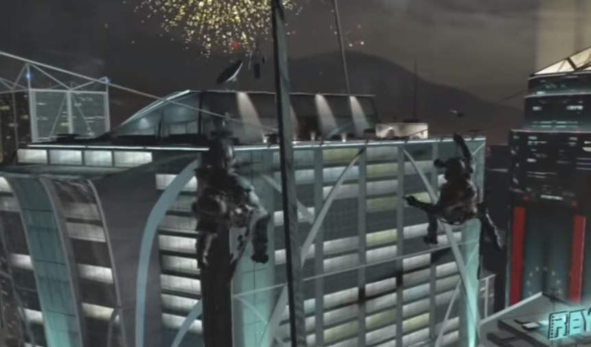 연방 기념일에 남미 카라카스에서 로르케에 대한 정보를 알기 위해, 헤쉬, 로건, 키건이 파견됩니다. 그들은 한 빌딩의 옥상에서 Visual ID로 헬기에서 내리는 라모스를 확인합니다. 화면에 나오는 ID 체크에서 붉은 표시가 나오면, 조금 후에 ID 체크가 끝나길 기다렸다가 작전을 개시합니다. 유령 대원들은 로프 발사기의 노랗게 빛나는 잠금장치를 해제한 후 연방이 사용하는 건물로, 로프를 발사해 잠입에 성공합니다. 나(로건)는 헤쉬와 키건을 도와 적을 제거하면 됩니다. 빌딩 유리창 밖에 도착한 대원들은 목표하는 층의 적을 다 제거해야만, 키건이 유리창 안으로 침투하므로 잘 살펴보고 유리를 제거하고 건물 안으로 잠입합니다. 건물 안으로 침투한 로건은, 키건을 따라가며 임무를 수행하는데 먼저 바이러스를 적의 컴퓨터에 업로드시킵니다. 그리고 얼른 몸을 은폐하고 키건이 적을 제거할 때까지 기다립니다. 이제 다시 건물 밖으로 나와 로프를 타고 아래층으로 내려가서 순찰 중의 적 3 명을 제압합니다. 다시 빌딩 안에 들어간 유령 대원들은 TV를 시청하며 쉬고 있는 적들을, TV를 부수며 어두워진 상태에서 섬광을 번쩍이며 총으로 공격합니다. 이후에 대원들을 놓칠 수가 있는데 당황하지 말고 다른 쪽 문밖으로 나와 유리로 된 문을 열고 빠져나오면 됩니다. 다시 합쳐진 3 명의 대원은 적과 교전을 벌입니다. 다시 로프를 이용해 건물 아래로 하강합니다. 적과 전투를 벌이면서 빅터 라모스를 사로잡아 로르케가 살아있음을 확인합니다. 건물 자체를 무너뜨리려는 적의 의도를, 낙하산으로 탈출하면서 이번 임무는 로르케의 생존을, 확인하고 끝이 나게 됩니다.